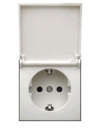 Лицевая панель белого цвета. Заземляющий контакт. Шторка и крышка для защиты от детей.