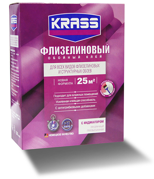 Налить в емкость необходимое количество холодной воды. При постоянном помешивании высыпать содержимое пакета тонкой струйкой ближе к краю емкости. Перемешивать раствор в течение 3 минут до однородной массы. Оставить на 10-15 минут, затем снова перемешать. Клей готов. Подготовить полотно, равное высоте стены, добавив по 5 сантиметров сверху и снизу. Нанести клей кистью или валиком прямо на стену, распределяя его равномерным слоем. Наклеивать полотна непосредственно на стену, от верха, разглаживая приклеенные обои сухой чистой щеткой или тряпкой от центра к краям, удаляя пузырьки воздуха. Обрезать после высыхания излишки обоев по плинтусу. Следующие полотна наклеивать встык.Очистка инструмента – тёплой водой.Окрашивание обоев под покраску производить не ранее, чем через 24 часа.