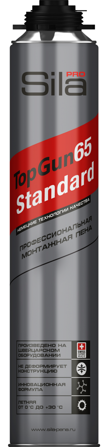 Sila Pro TopGun 65 STANDARD - высококачественная однокомпонентная монтажная пена с увеличенным выходом, отличается отличной адгезией, равномерной структурой и низким вторичным расширением.