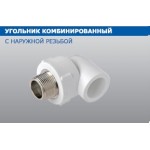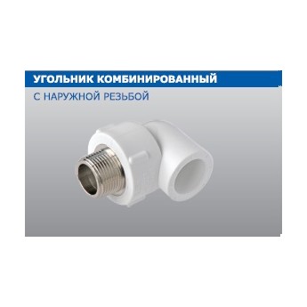 PPR Угольник комбинированный НР (наружная резьба). Предназначен для поворота полипропиленовой трубы с переходом на трубу с резьбовым соединением.