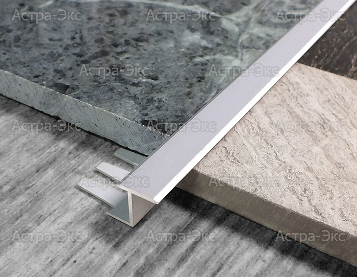 Профиль используется для поверхностей расположенных на одном уровне, между керамическим, деревянным и ковровым покрытиями. Используется для смещающихся конструкций. Ширина верхней полки позволяет маскировать дефекты по краю среза.